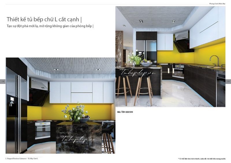 Mẫu tủ bếp đẹp với kiểu dáng chữ L đầy mới lạ, đây được coi như là cảm hứng tạo cho những người nội trợ trong gia đình bạn