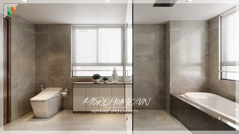 Thiết kế phòng tắm với đầy đủ những tiện nghi mang đến cảm giác dễ chịu thoải mái khi bước chân vào căn phòng.