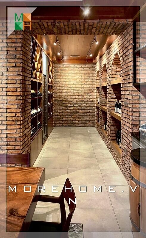 Chất liệu chính căn phòng rượu chung cư, biệt thự, nhà phố là gỗ tự nhiên, trần nhà bằng gỗ đẹp và đẳng cấp.
