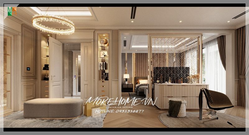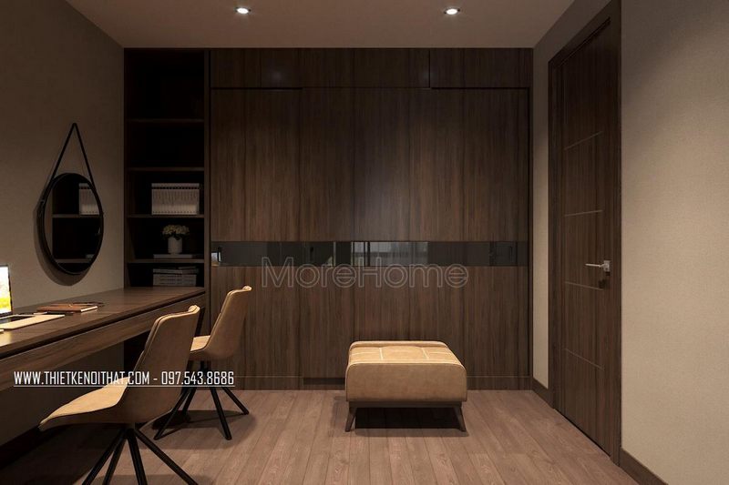 Phòng ngủ có phòng làm việc bao gồm những tiện ích sau: Giường ngủ êm ái, hiện đại, vách ngăn phòng, tủ kệ để đồ, tủ quần áo, ghế đôn dài. Tổ hợp những tiện ích đó luôn đáp ứng được mọi nhu cầu sinh hoạt của mỗi người.