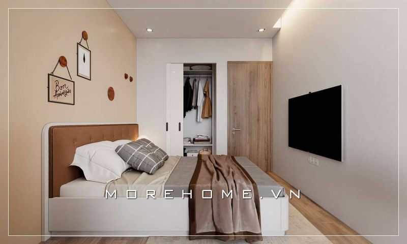 Tủ quần áo âm tường kịch trần tiết kiệm được khoảng không gian phòng ngủ gọn gàng mang lại tính thẩm mỹ hiện đại