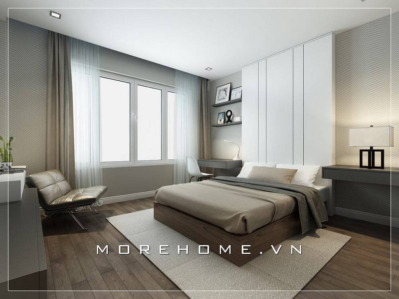 Thiết kế nội thất phòng ngủ hiện đại, tone màu trung tính nhẹ nhàng thích hợp cho phòng ngủ ông bà