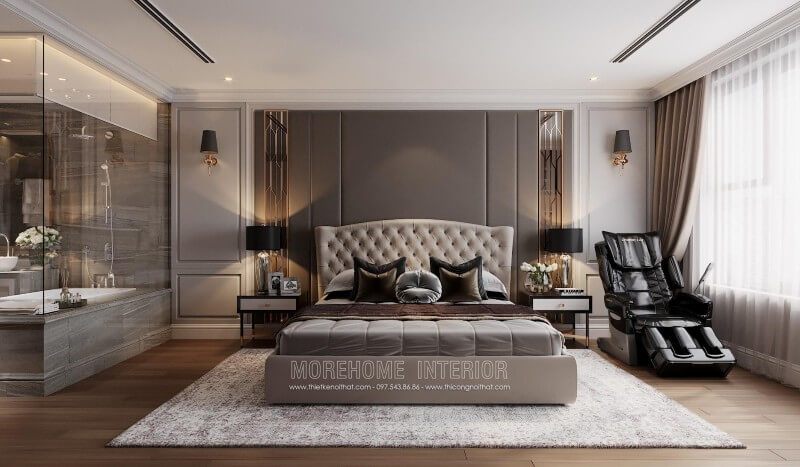 Phòng ngủ được thiết kế ấn tượng với nội thất tân cổ điển cao cấp sang trọng