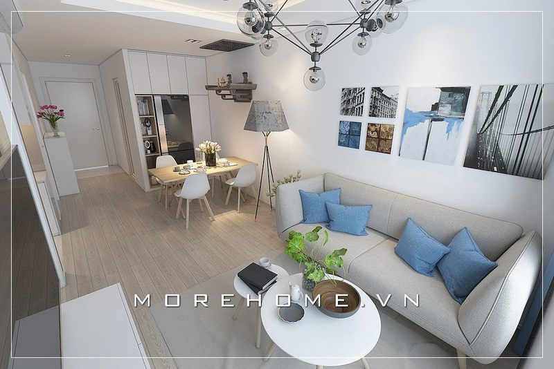 Lựa chọn bộ sofa văng hiện đại nhỏ gọn tiện nghi với vỏ bọc vải màu kem tinh tế mang đến sự tươi mới, trẻ trung thoáng đãng cho phòng khách căn hộ chung cư.