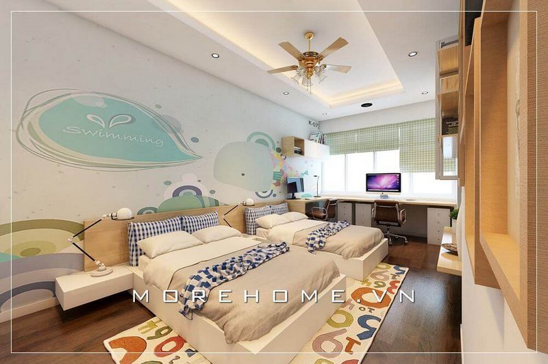 Thiết kế giường ngủ bé trai hiện đại tại biệt thự cao cấp