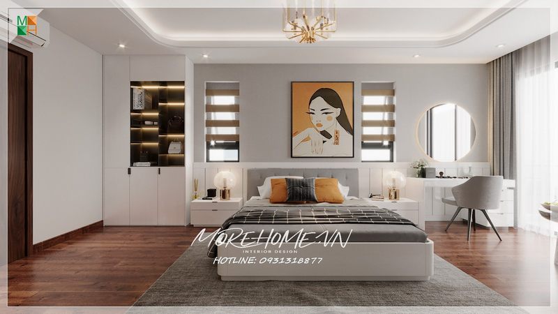 Cuốn hút bất cứ ai khi bước vào không gian phòng ngủ bằng điểm nhấn sắc màu của tranh và gối. Sự gọn gàng trẻ trung của thiết kế phòng ngủ hiện đại đang là xu hướng cực ăn khách cho phòng ngủ nữ.