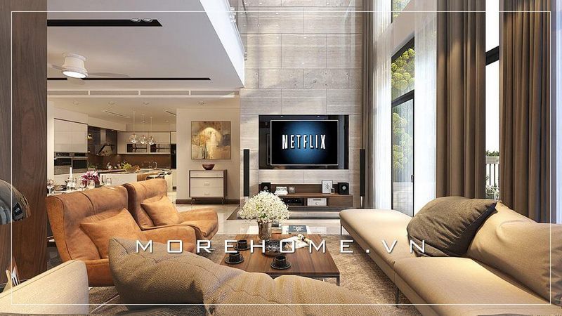 Phòng khách căn hộ chung cư vừa ấn tượng với vẻ sang trọng, cao cấp lại tiện lợi thoáng đãng từ thiết kế sofa da màu nâu hiện đại tinh tế.