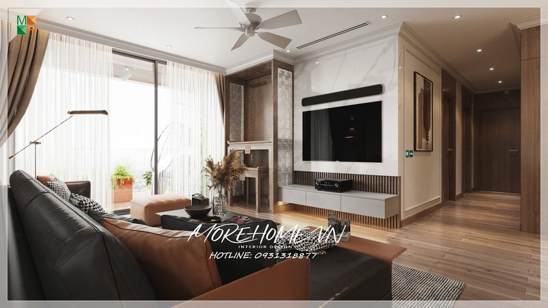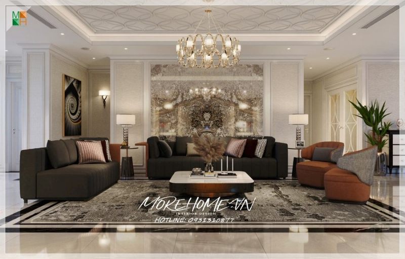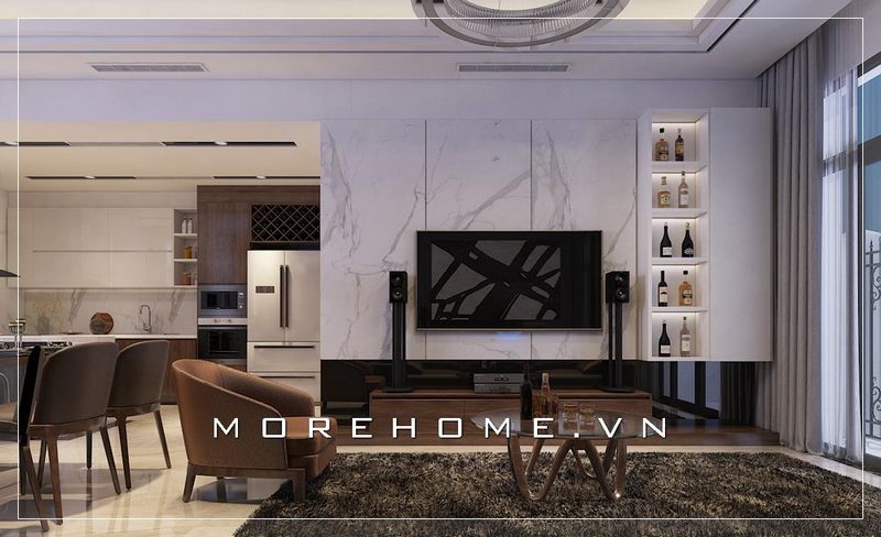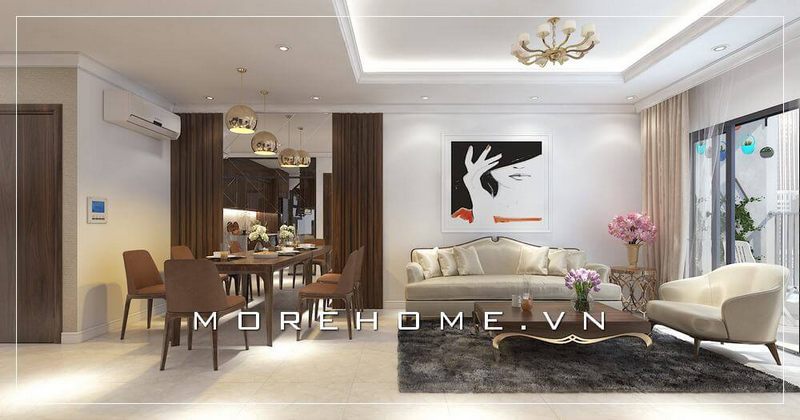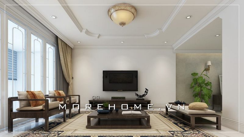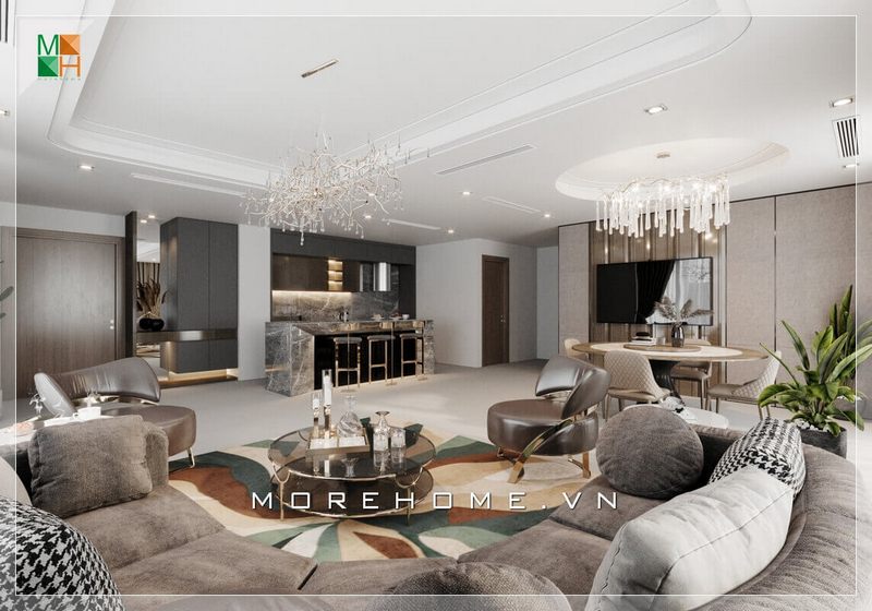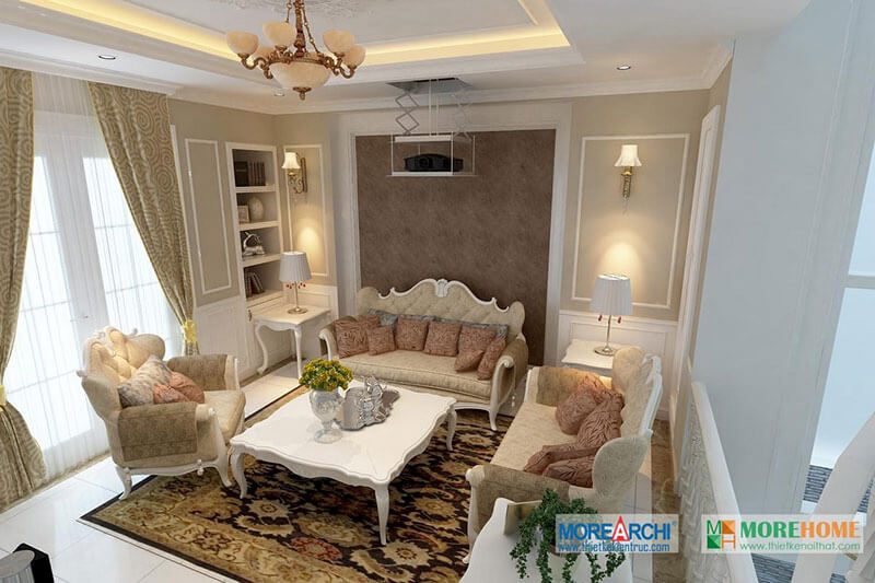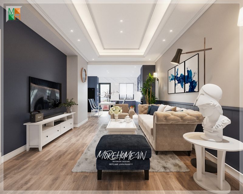 Morehome gợi ý cho bạn mẫu thiết kế nội thất phòng khách chung cư, nhà phố tiện nghi và sang trọng mang phong cách tân cổ điển.
