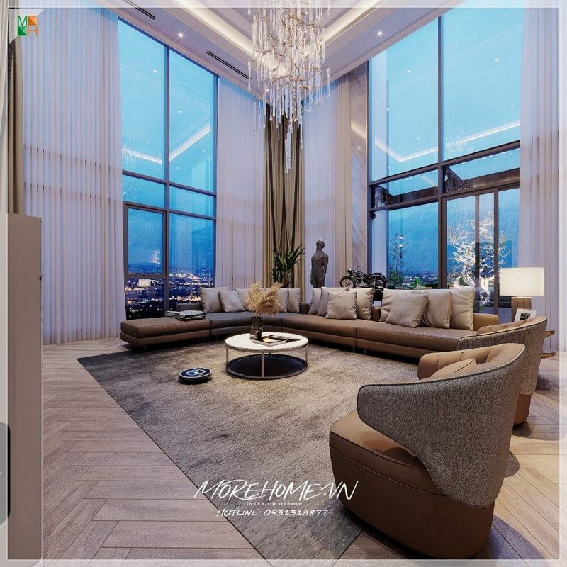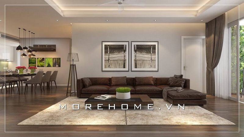 Đẹp, sang trọng và tiện nghi là những phản hồi tích cực đến từ phía người tiêu dùng với mẫu thiết kế phòng khách chung cư hiện đại ấn tượng của Morehome.