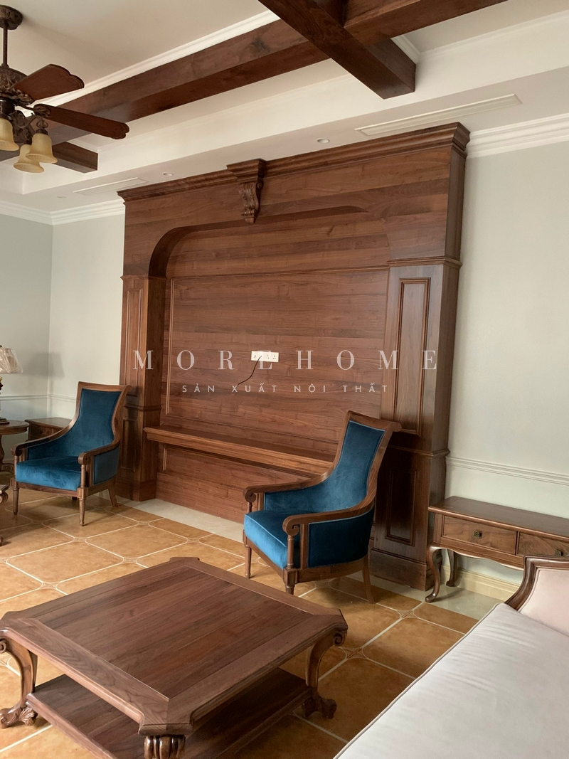 Mẫu thiết kế sofa gỗ óc chó tân cổ điển được lựa chọn nhiều nhất tại Hà Nội.
