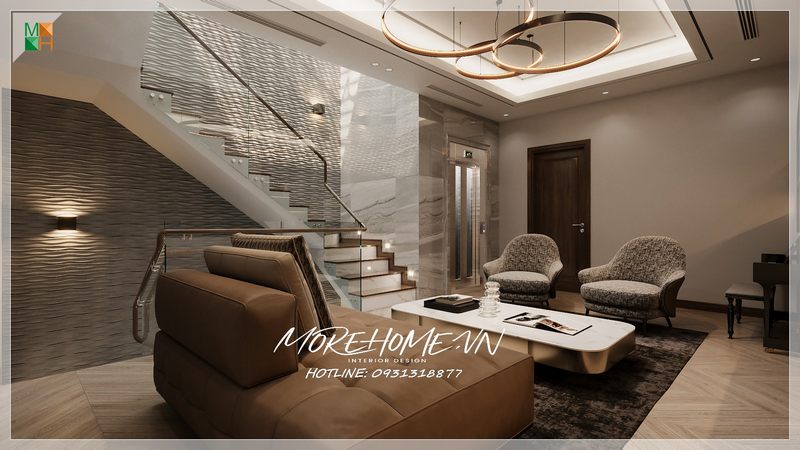 Với phòng khách biệt thư, nhà phố không gian đang được thi công theo bản thiết kế của các kiến trúc sư Morehome phòng được trang trí đầy đủ tiện ích sử dụng, gặp gỡ bạn bè và người thân.