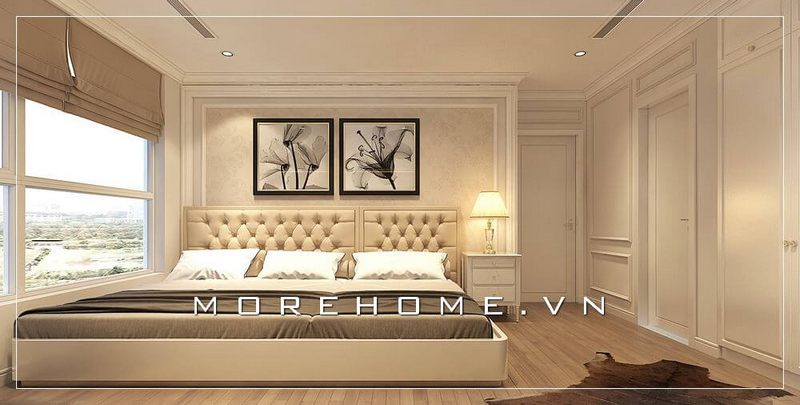 Thi công giường ngủ bọc nệm màu be tân cổ điển đem tới sự nghỉ ngơi, nâng niu những giấc ngủ có một tinh thần thoải mái.