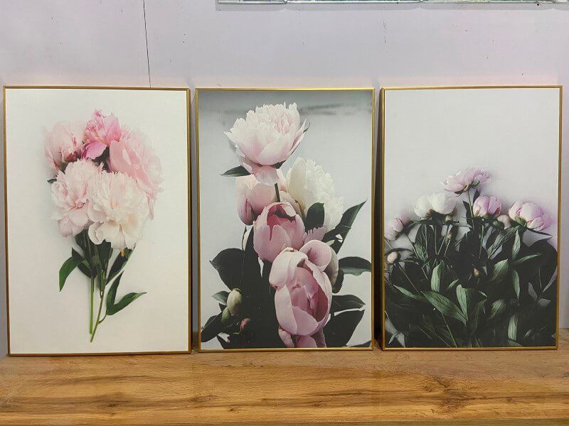 Bộ 3 tranh Canvas chủ đề Hoa mẫu đơn