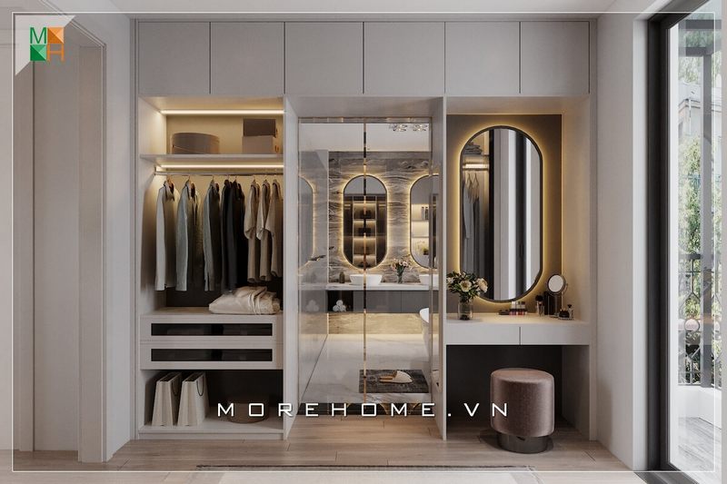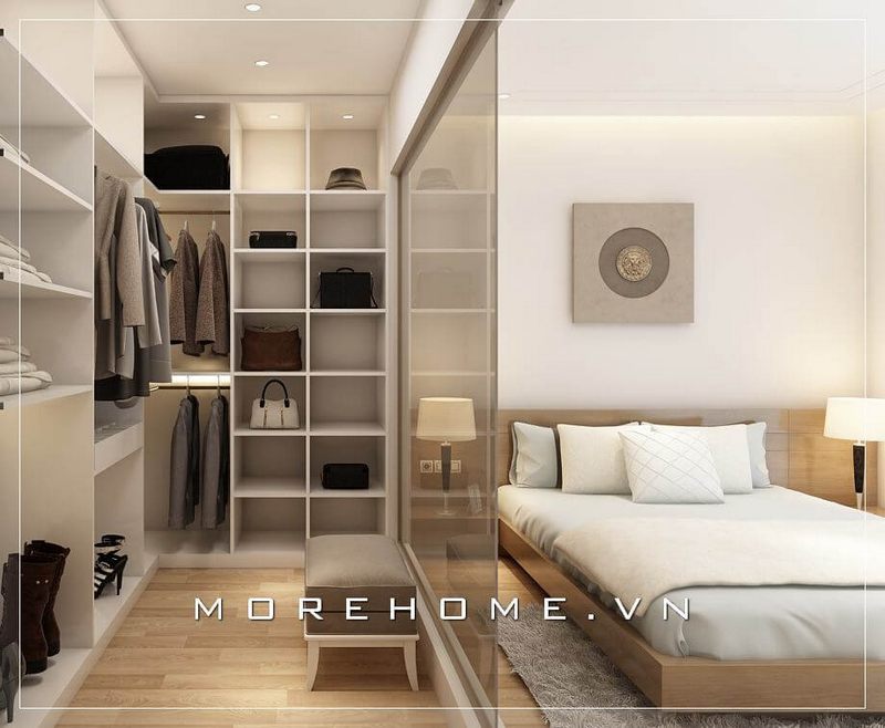 Với phòng ngủ có diện tích rộng như phòng ngủ master, khu thay đồ thường sẽ được bố trí ở một khu vực riêng biệt