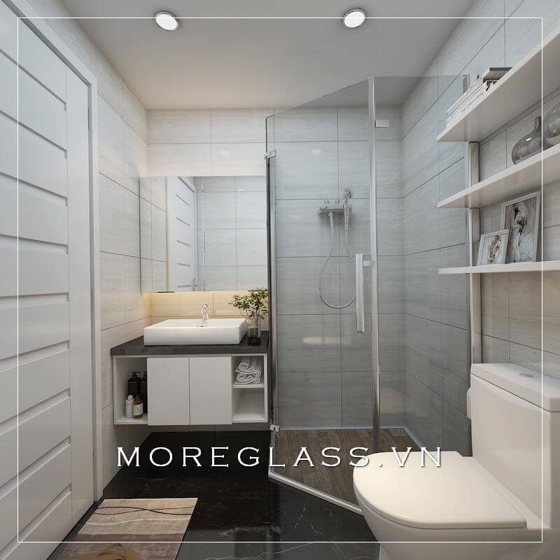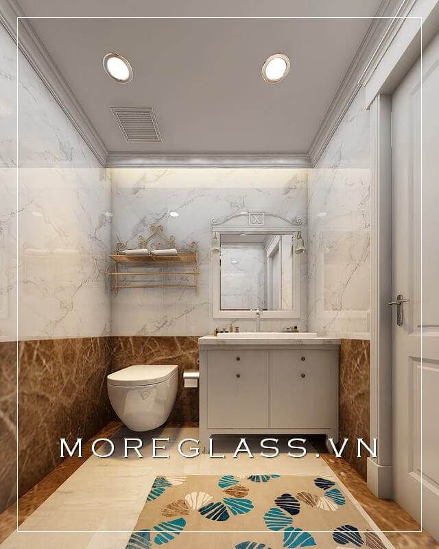 Mẫu thiết kế nội thất phòng tắm chung cư đẹp màu trắng sang trọng, lôi cuốn