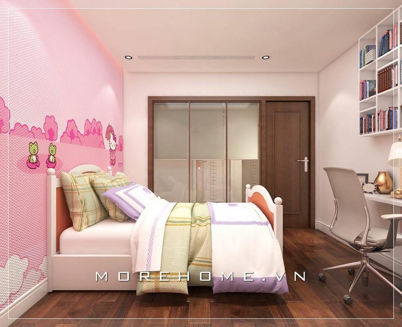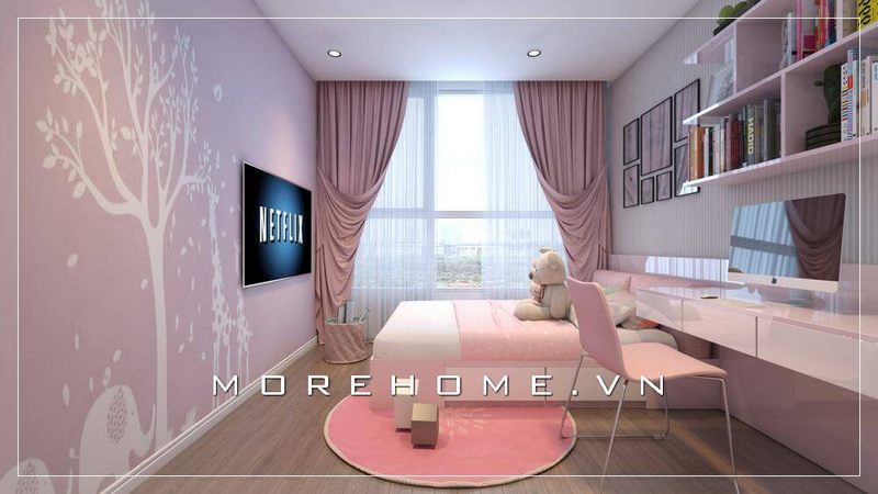 Trang trí nội thất phòng ngủ bé gái tại chung cư hiện đại