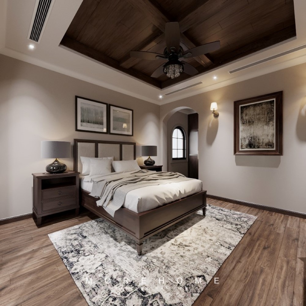 Phòng ngủ nhà phố, biệt thự nội thất trang trí phù hợp với không gian diện tích và phục tốt cho quá trình sử dụng nghi ngơi thư giãn của gia chủ.