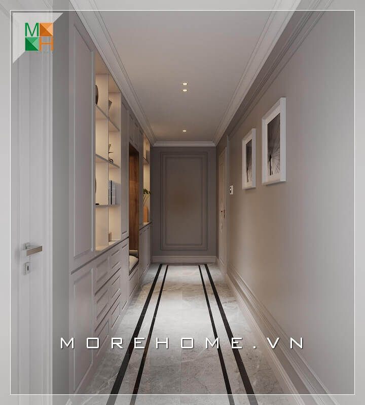 Mẫu thiết kế kệ tủ đồ gỗ hiện đại hành lang một thiết kế hiện đại phù hợp cho chung cư cao cấp, biệt thự, nhà phố.