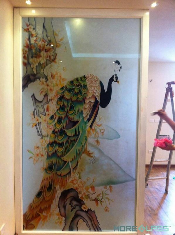 Mẫu tranh kính 3D chim công, ứng dụng làm vách ngăn phòng giúp tạo không gian riêng tư và tăng tính thẩm mỹ cho ngôi nhà của bạn