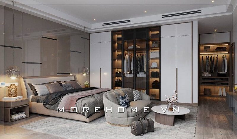 Mang đến không gian nghỉ ngơi, thư giãn lí tưởng với mẫu thiết kế phòng ngủ sang trọng với cách bố trí nội thất hợp lí, tông màu kết hợp hài hòa
