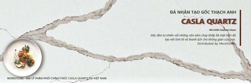 Mẫu đá nhân tạo gốc thạch anh Casla với độ cứng vượt trội cùng gam màu tinh tế, tạo điểm nhấn nổi bật cho mọi công trình mà nó đang sở hữu
