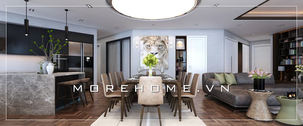 Mẫu bàn ăn 8 ghế gỗ hiện đại cho phòng ăn chung cư
