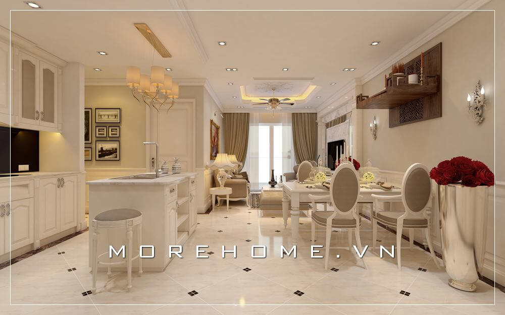 Mẫu bàn ăn 4 ghế tân cổ điển sang trọng cho phòng ăn chung cư